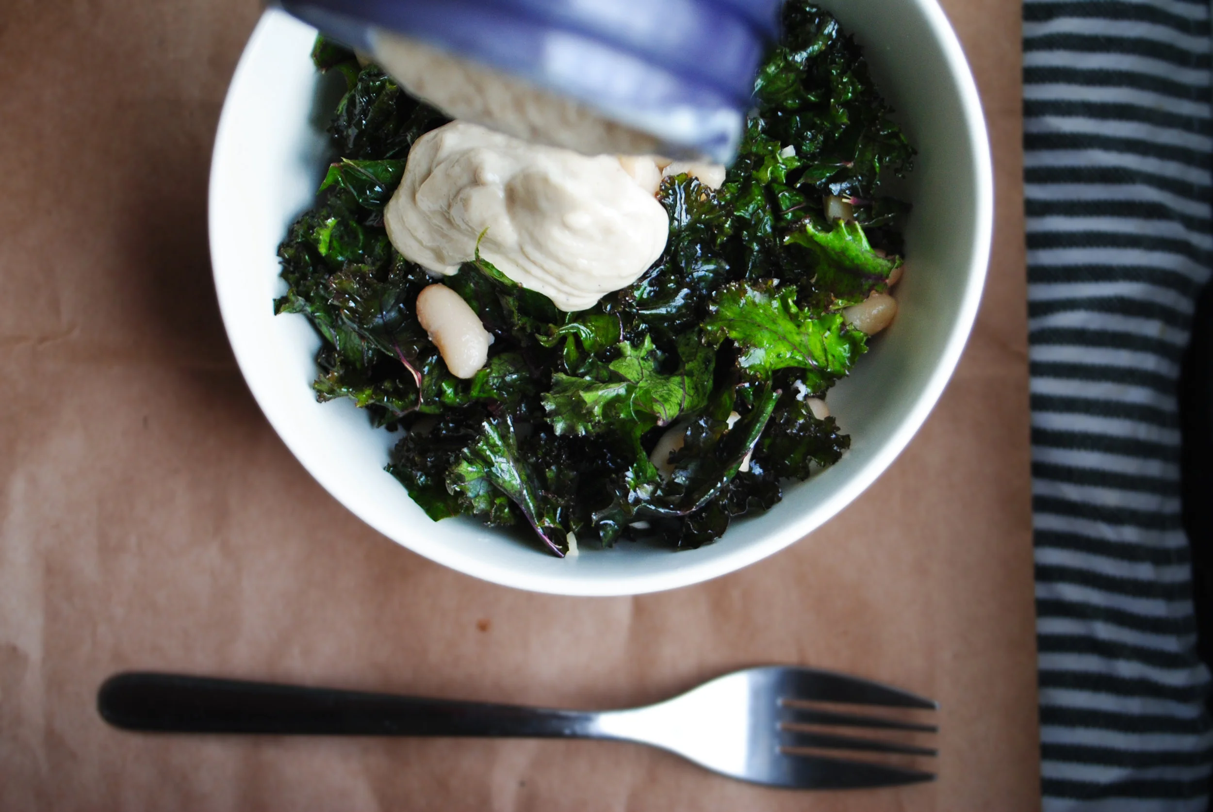 Assemble: when you're ready to serve, add the beans and dressing to the kale. Toss well and serve.