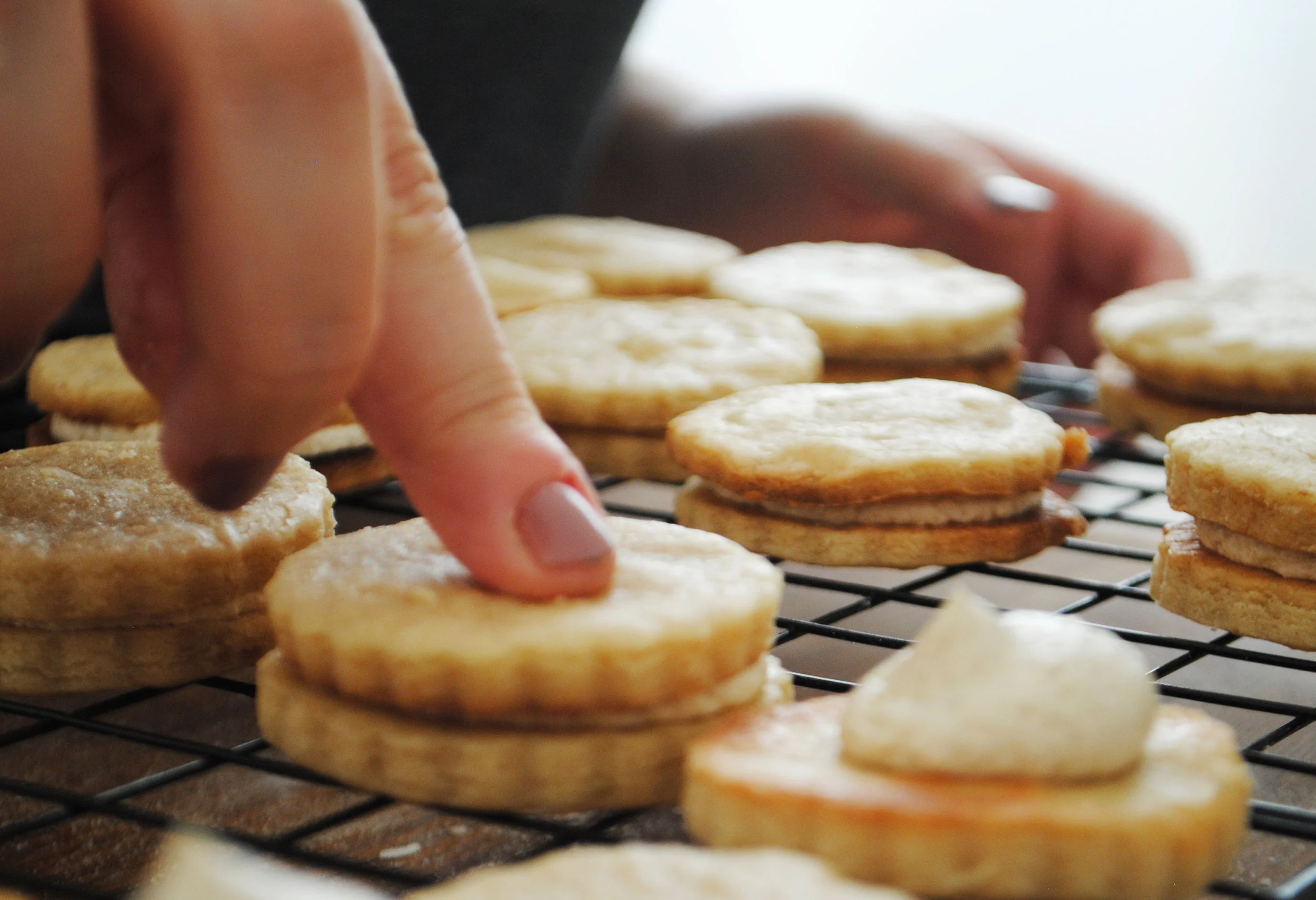 Make the filling: while the cookies are baking and cooling, prepare the filling. In the bowl of your mixer cream the butter for a few minutes, until really pale and fluffy. Add the powdered sugar in and mix to incorporate. Add the maple cream/syrup, vanilla, salt and cinnamon and beat on high for a few minutes. You want your filling to be on the stiffer side, so feel free to add a bit more powdered sugar if the mixture is too soft.