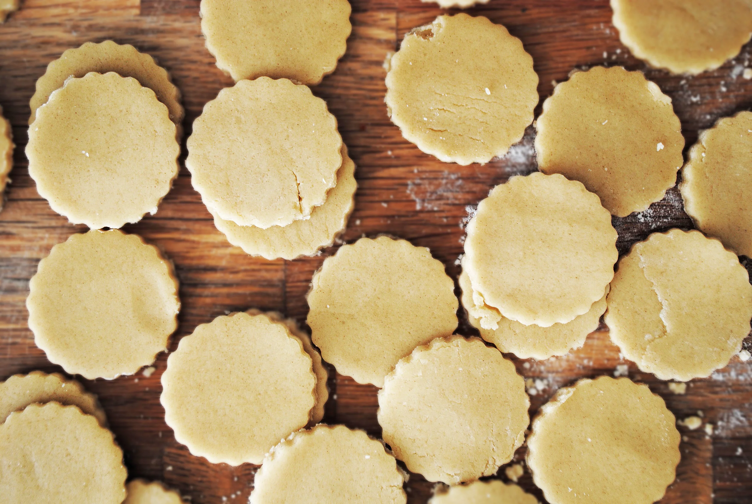 Make the cookie dough: in the bowl of an electric stand/hand mixer, beat the butter and sugar until pale and fluffy. With the mixer running on low, slowly add the egg yolk and vanilla. While incorporating, in a separate bowl sift and mix together the flour, cinnamon and salt. Add this to the butter mixture and mix until just combined - this will be a VERY crumbly dough. On a lightly floured work surface mush the clumps together to form a somewhat cohesive ball, flatten into a thick disc and cover with plastic wrap. Place in the fridge to chill for about 2 hours. You can keep it in there for up to 4 days!